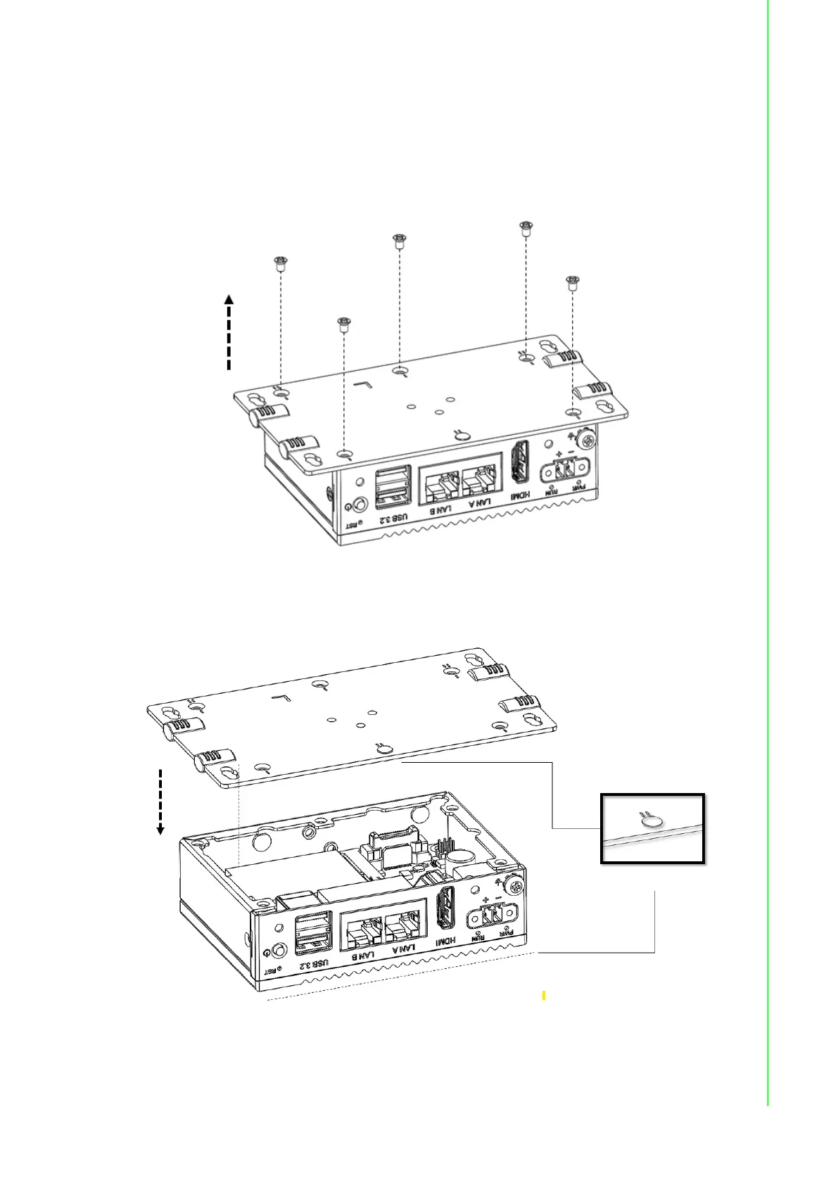 2. To close the bottom cover: Put the bottom cover onto the UNO-2271G V2 chas-