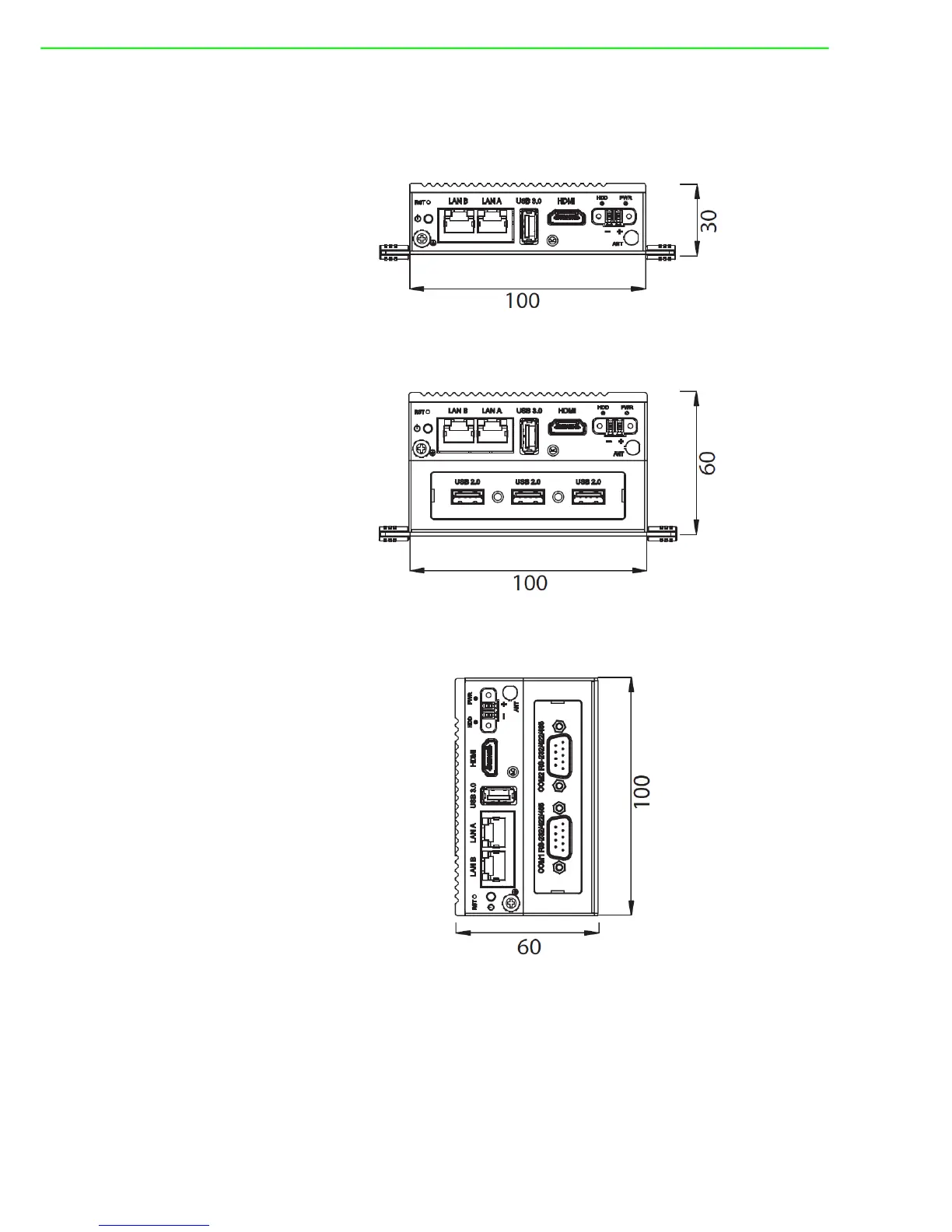 Figure 2.2 Front Panel of UNO-2271G-E22AE for two stack model which can