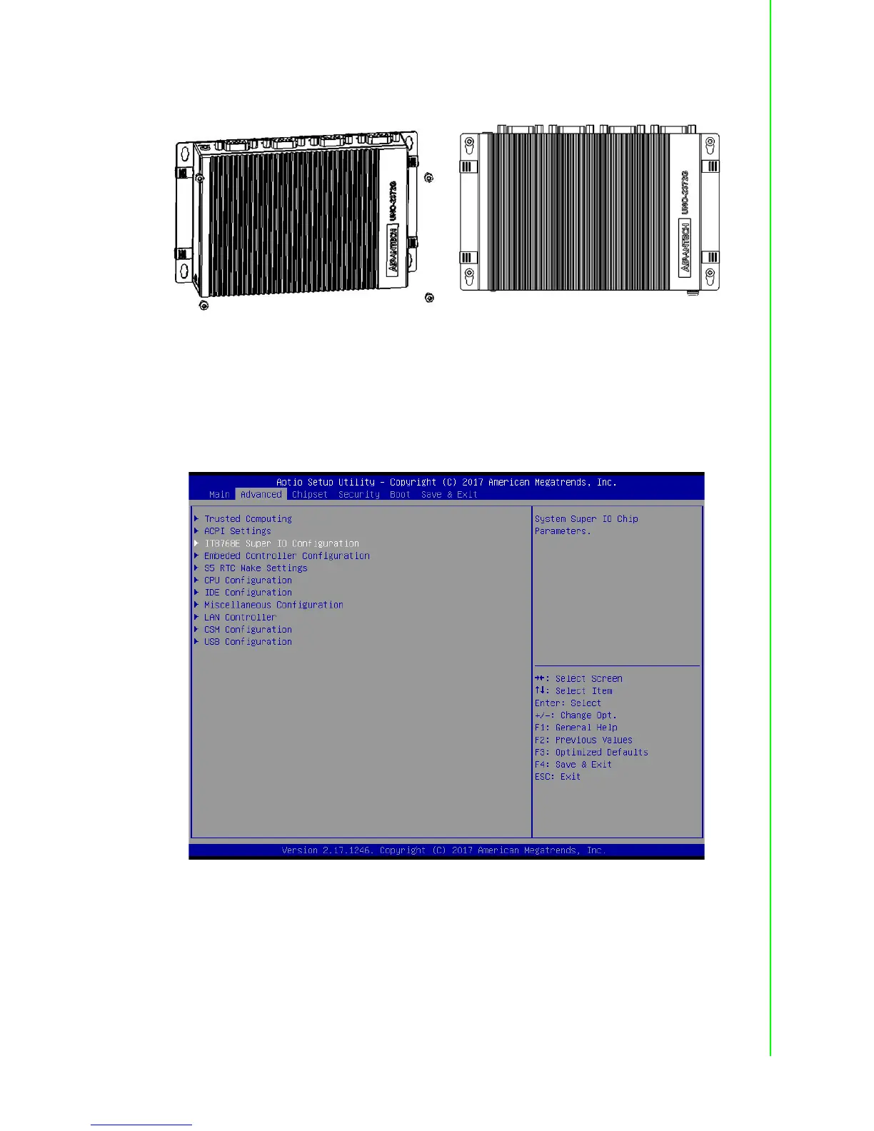 1. Power on the UNO-2372G system and press “Delete” to enter the BIOS config-
