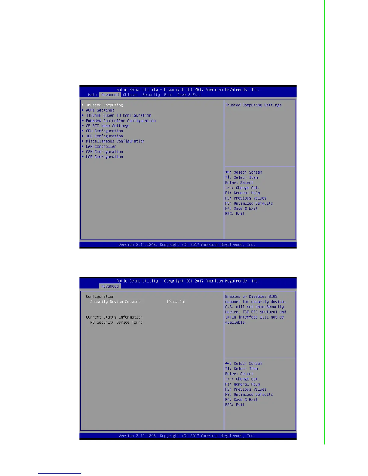 The UNO-2372G systems support TPM2.0 functionality. This can be enabled or dis-