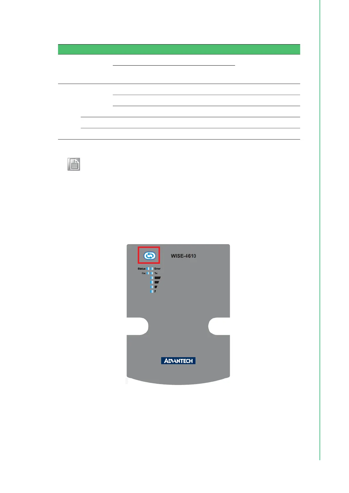 Note! If WISE-4610 is powered by the battery, the LED indicators will turn off