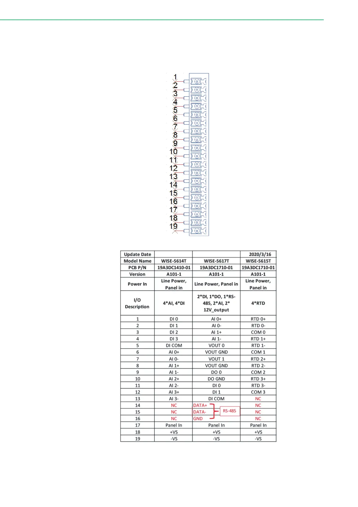 Advantech WISE Series - Pin Assignment of WISE-S600 T I;O Module with Terminal Block Connectors