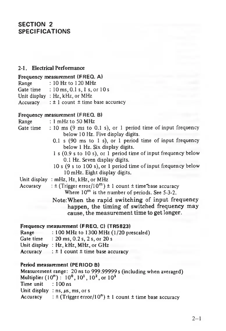 Gate time : 10 ms (9 ms to 0.1 s), or 1 period time of input frequency