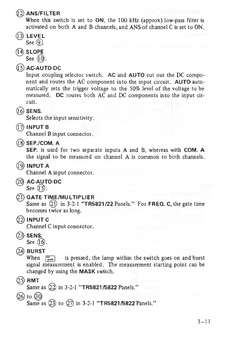 Same as @ in 3-2-1 “TR5821/22 Panels.” For FREQ. C, the gate time