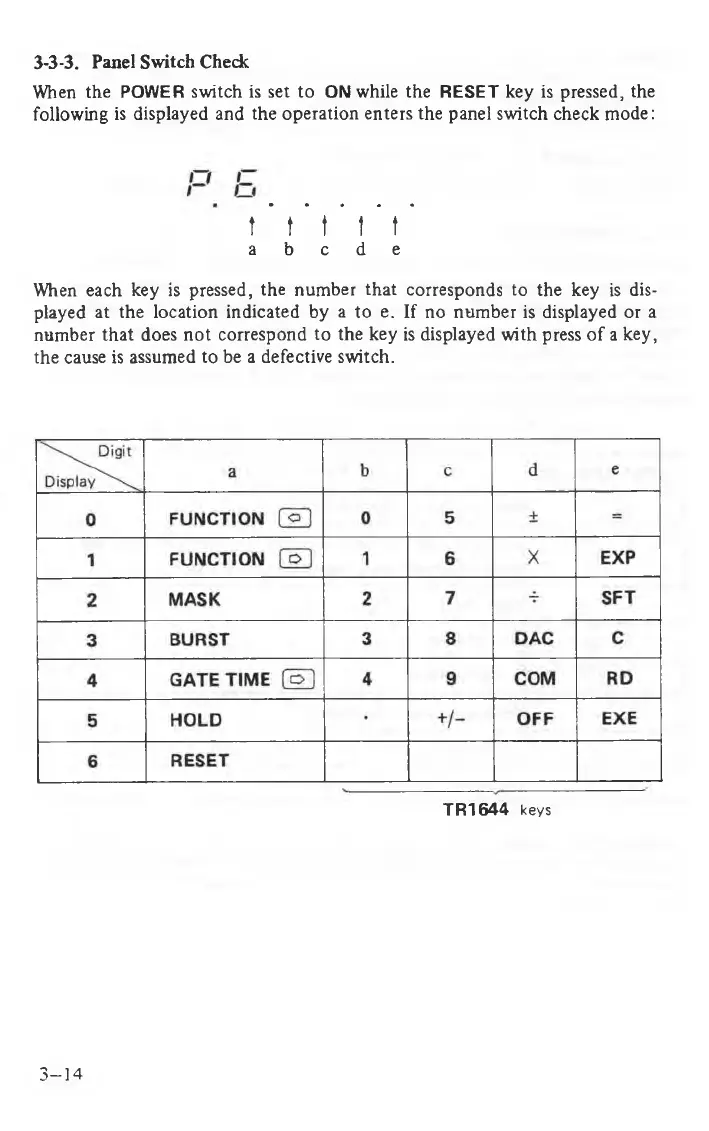 following is displayed and the operation enters the panel switch check mode: