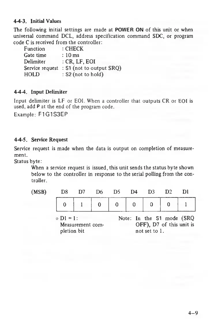 When a service request is issued, this unit sends the status byte shown