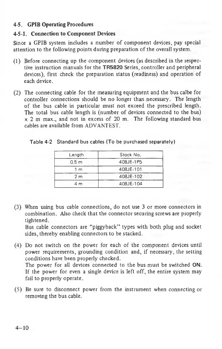 (2) The connecting cable for the measuring equipment and the bus calbe for