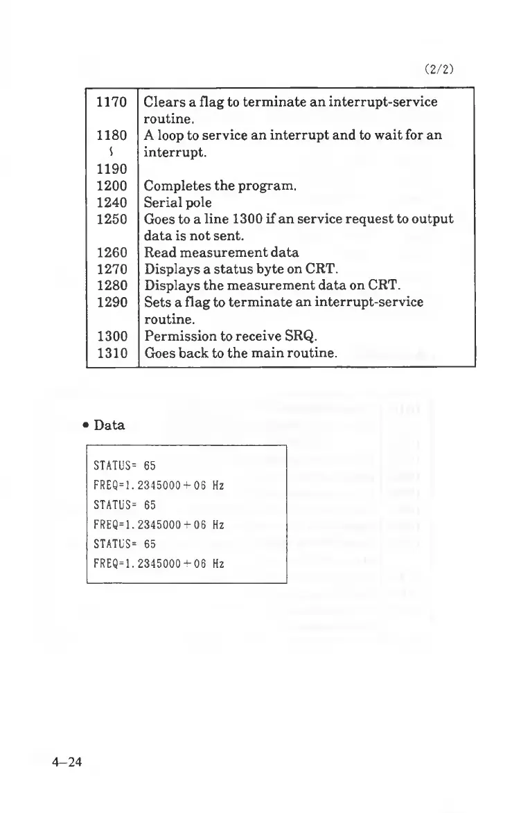 D i s p la y s a s t a t u s b y te o n C R T .