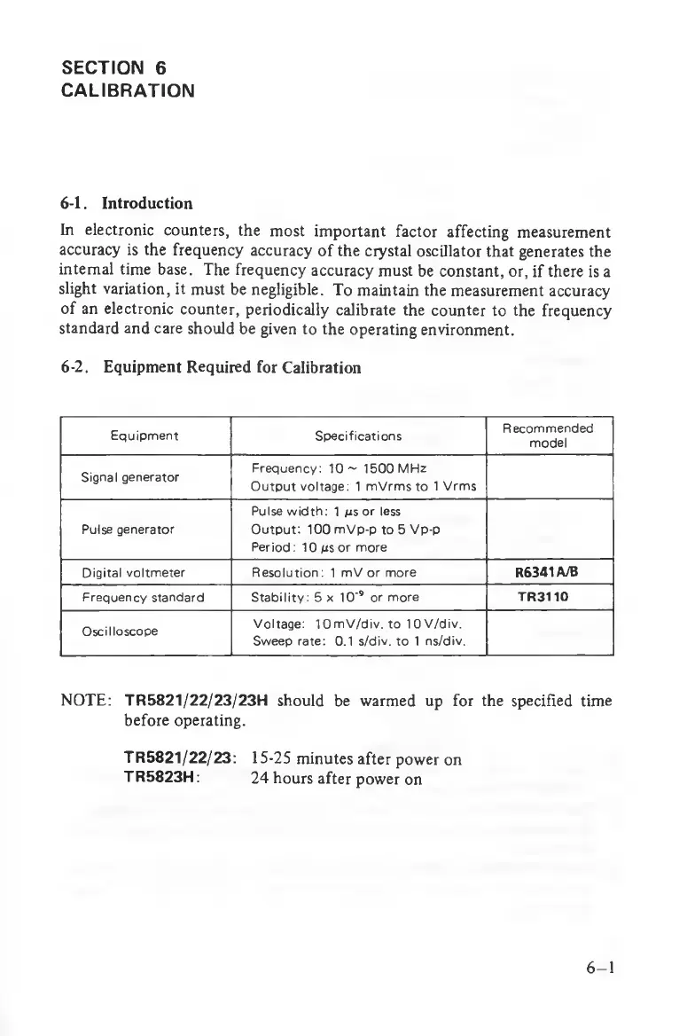 6-2 . E q u ip m e n t R e q u ire d fo r C alib ra tio n