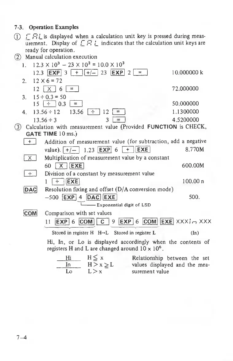 is disp lay ed w h en a c alc u la tio n u n it k ey is presse d d u rin g m e as