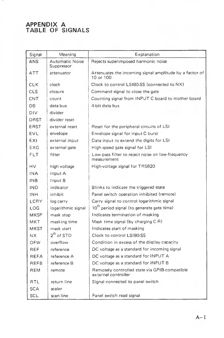 TABLE OF SIGNALS