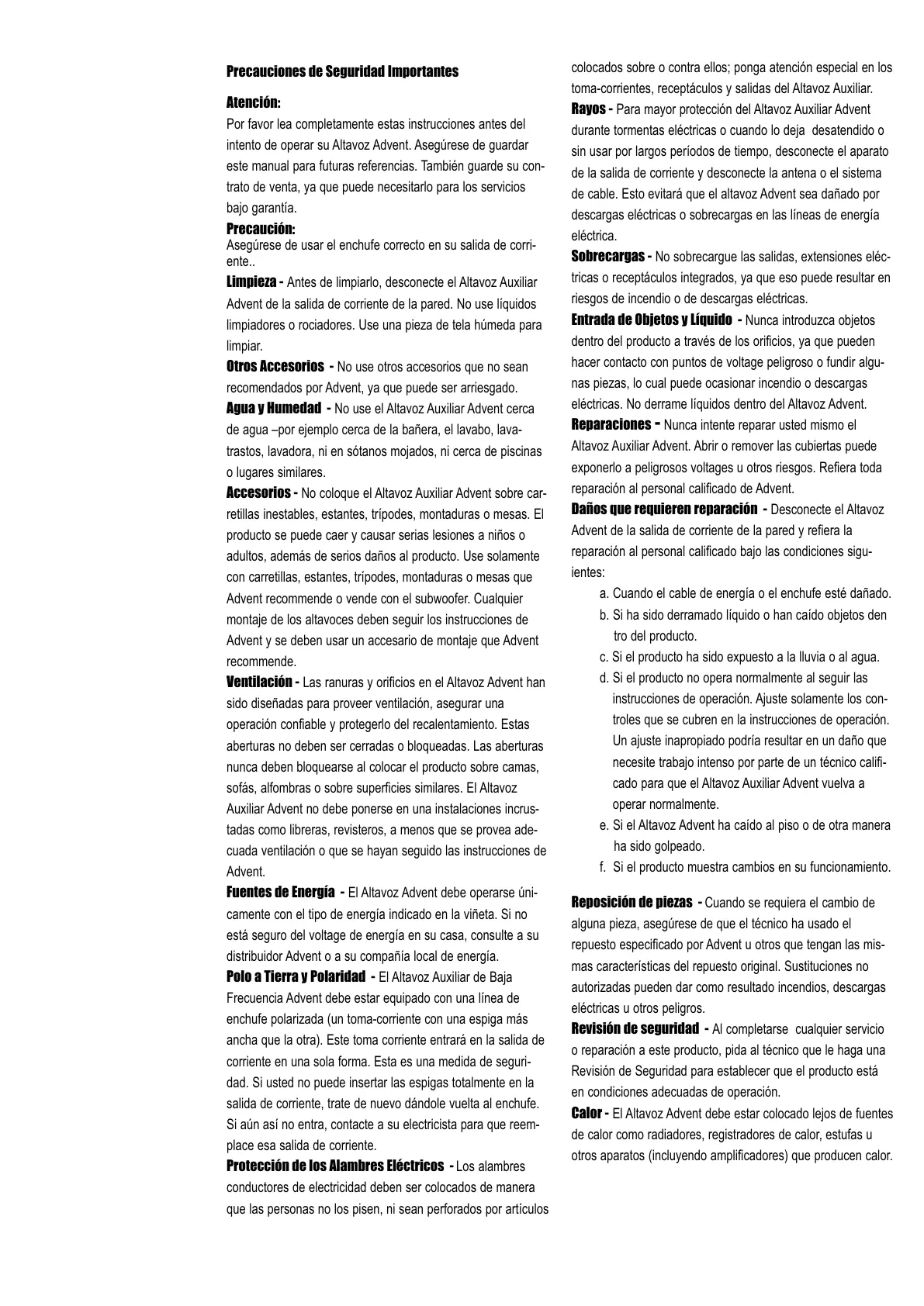 Fuentes de Energía - El Altavoz Advent debe operarse úni-