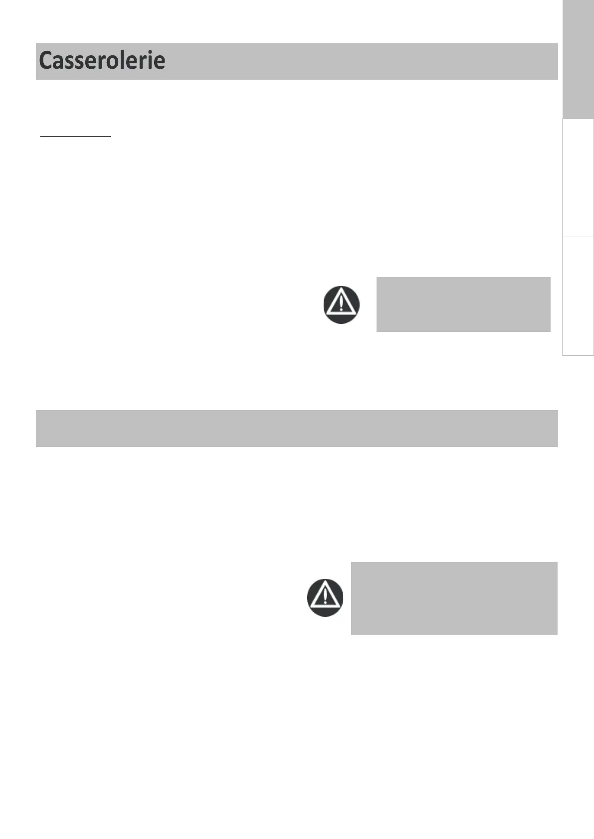 ustensiles de cuisine, etc., ne doivent pas