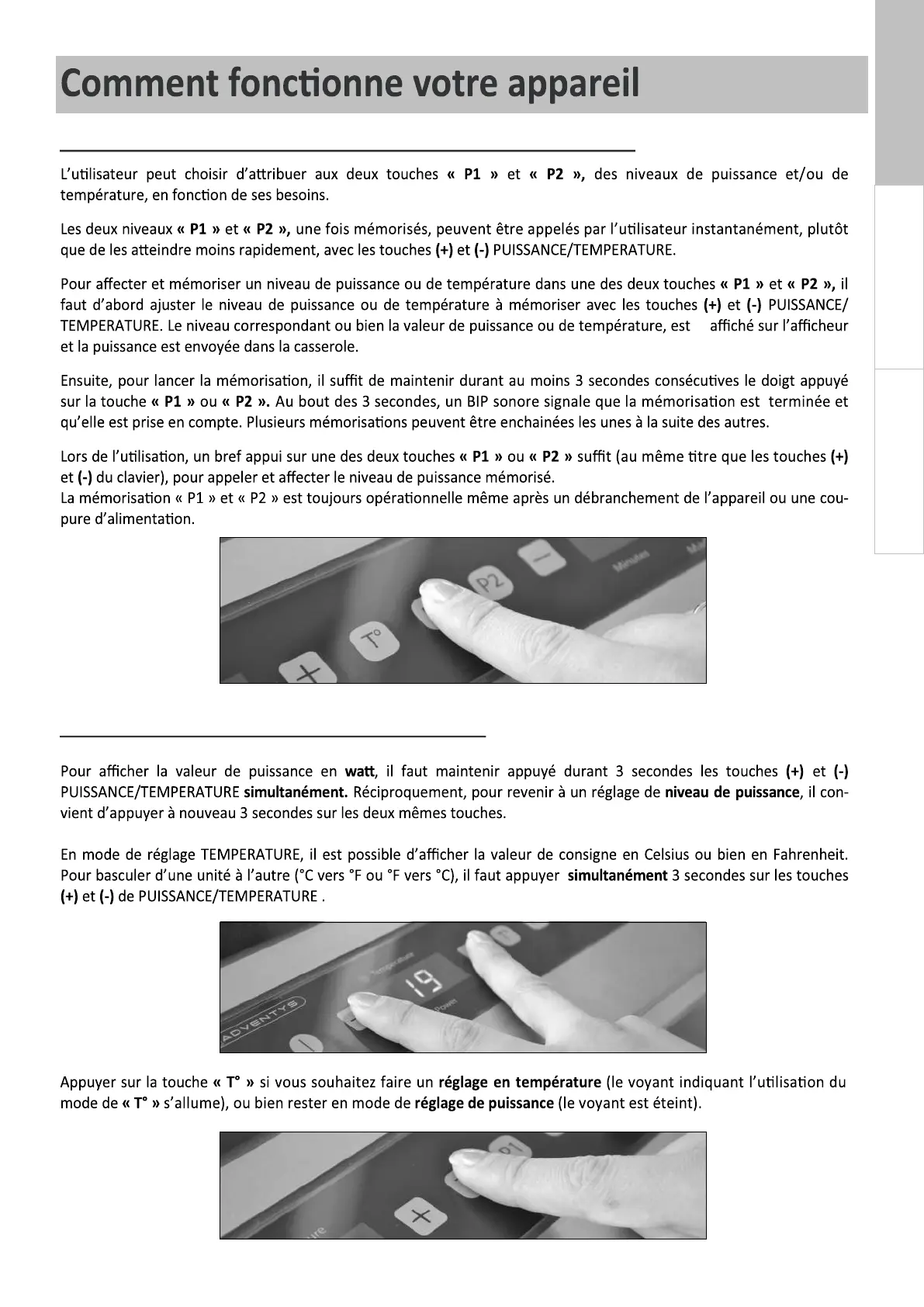 Adventys BRIC - Utilisation des Touches P1 Et P2; Changement des Modes de Réglage
