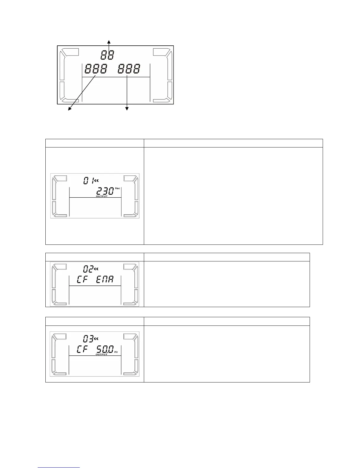 CF 50: presents output frequency is 50Hz