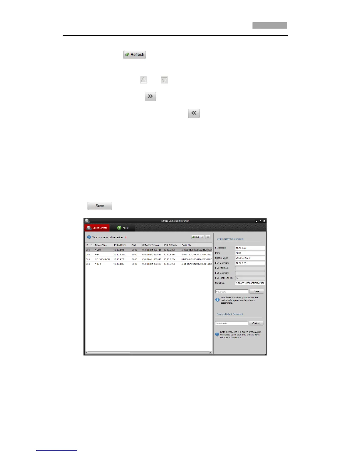 1. Select the device to be modified in the device list and the network parameters of