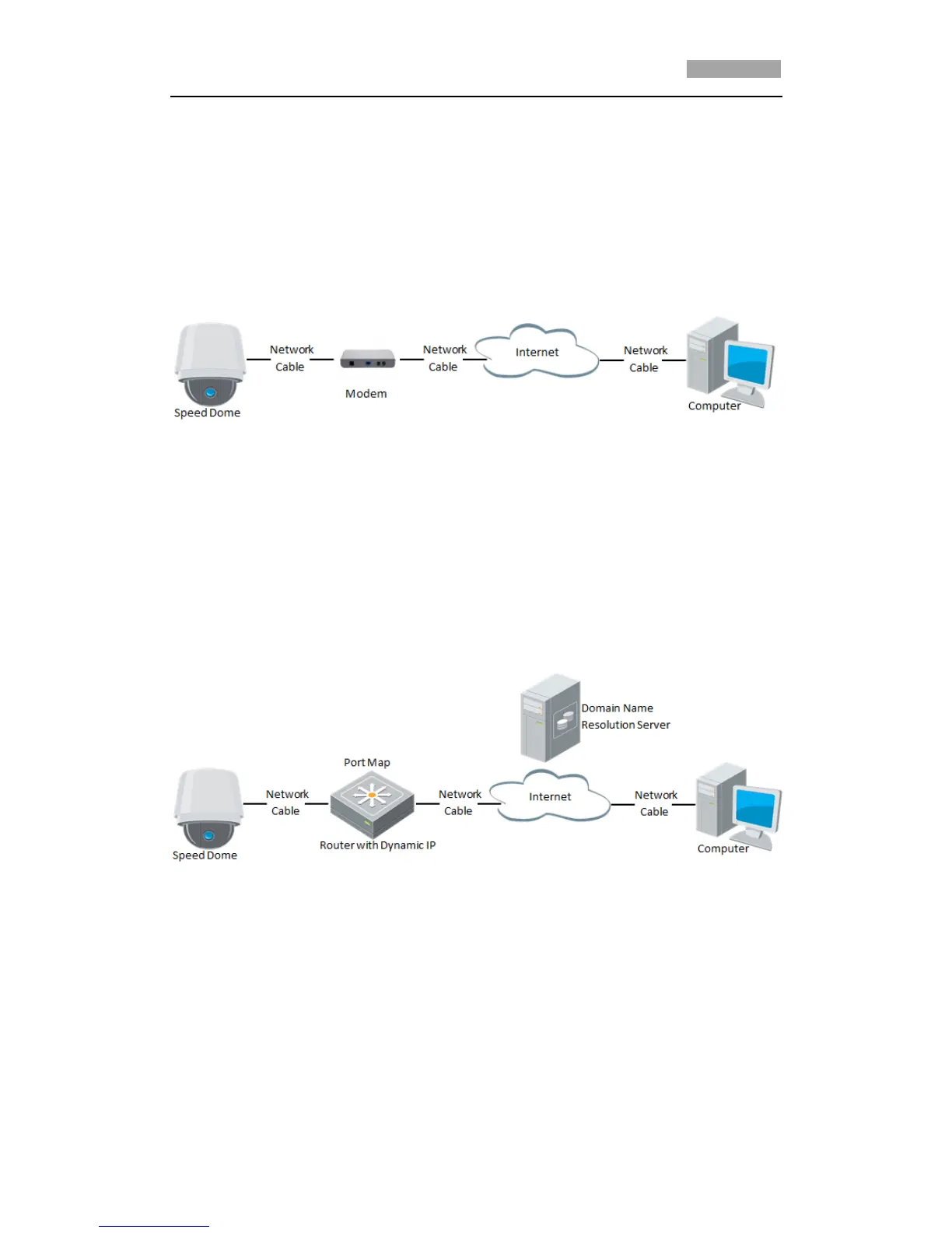public IP address by ADSL dial-up after the speed dome is connected to a modem.