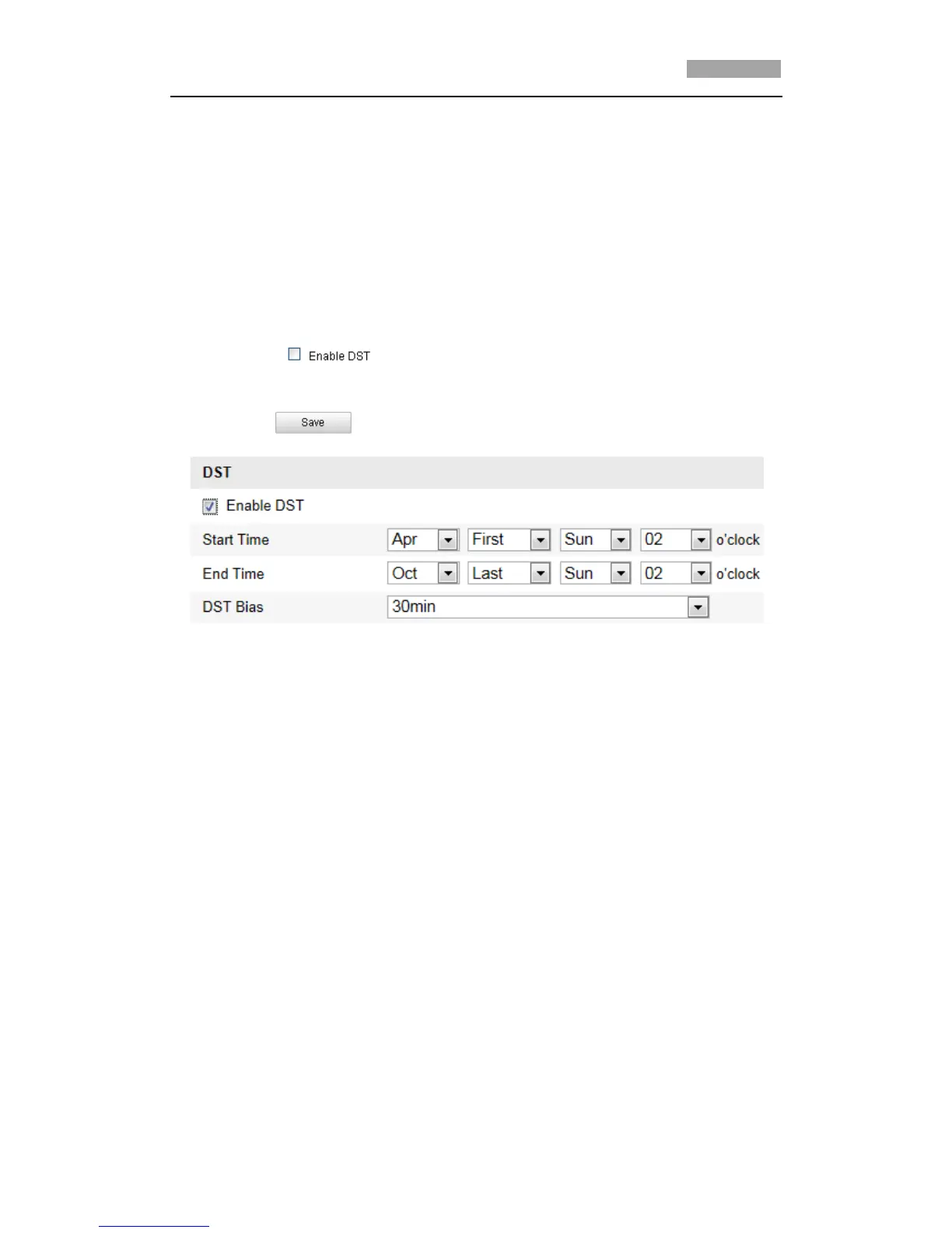 (1) Enter the DST interface by Configuration > Advanced Configuration >