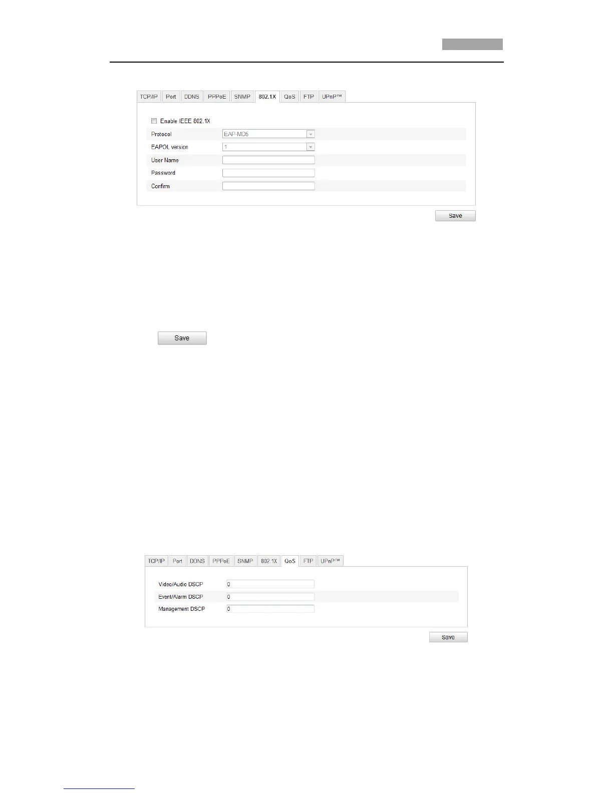 2. Configure the QoS settings, including video / audio DSCP, event / alarm DSCP and