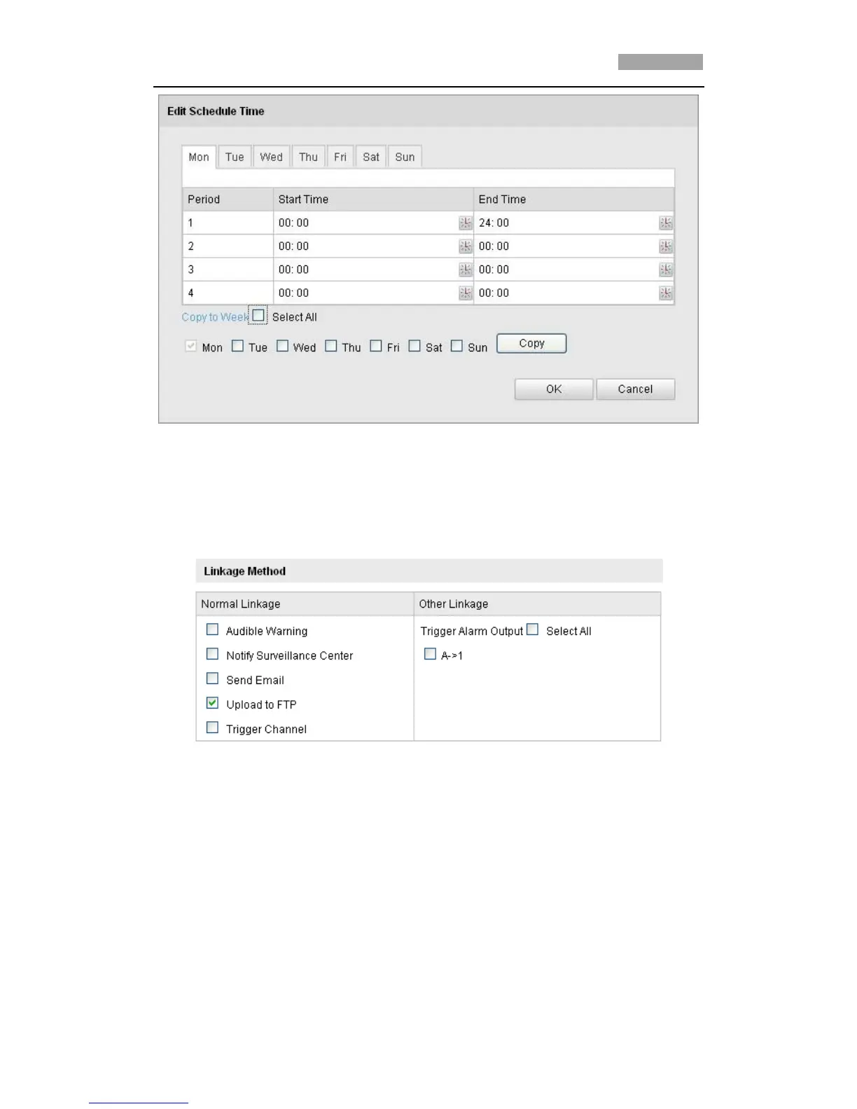 center, send email, upload to FTP, trigger channel and trigger alarm output