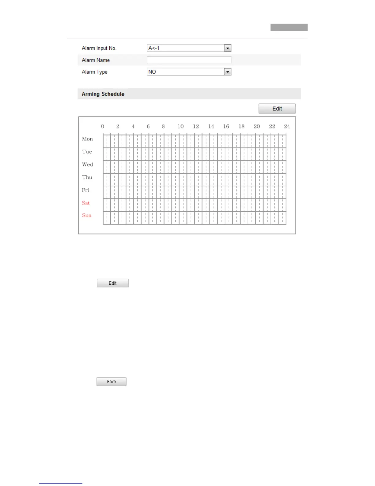 4. Click to set the arming schedule for the alarm input. Refer to Step 2