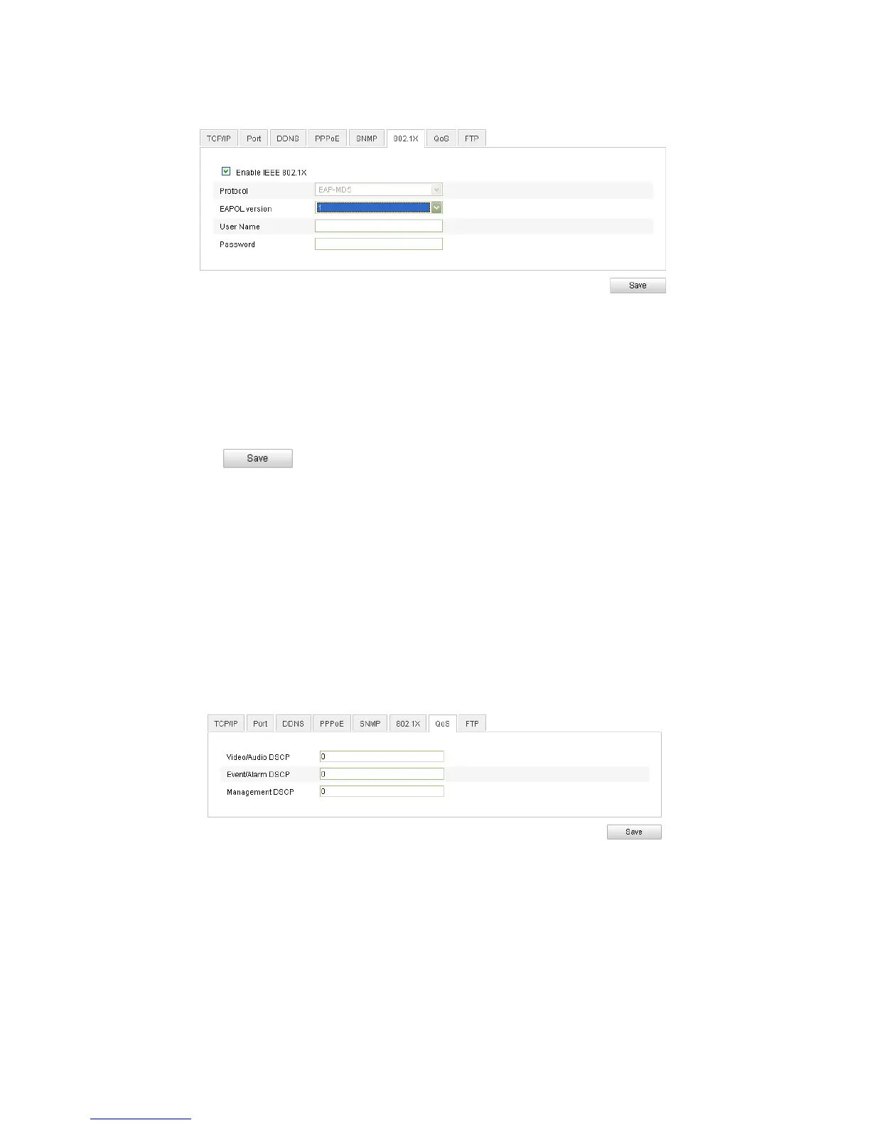 2. Configure the QoS settings, including video / audio DSCP, event / alarm DSCP and