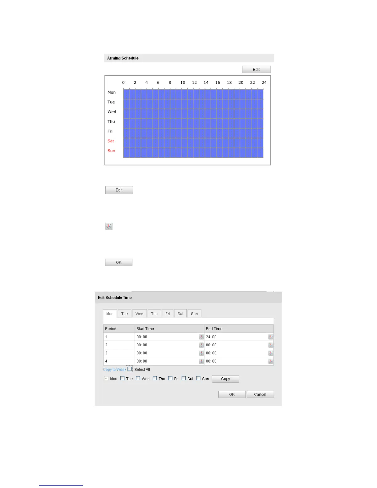 (3) Click to set the time period for the arming schedule.