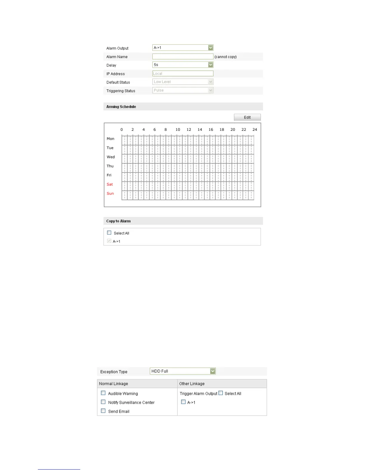 2. Check the checkbox to set the actions taken for the Exception alarm. Refer to