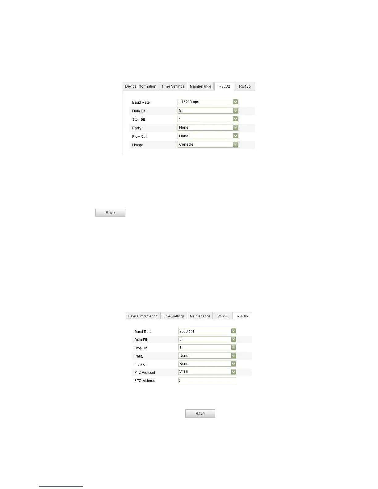 The RS-485 serial port is used to control the PTZ of the camera. The configuring of