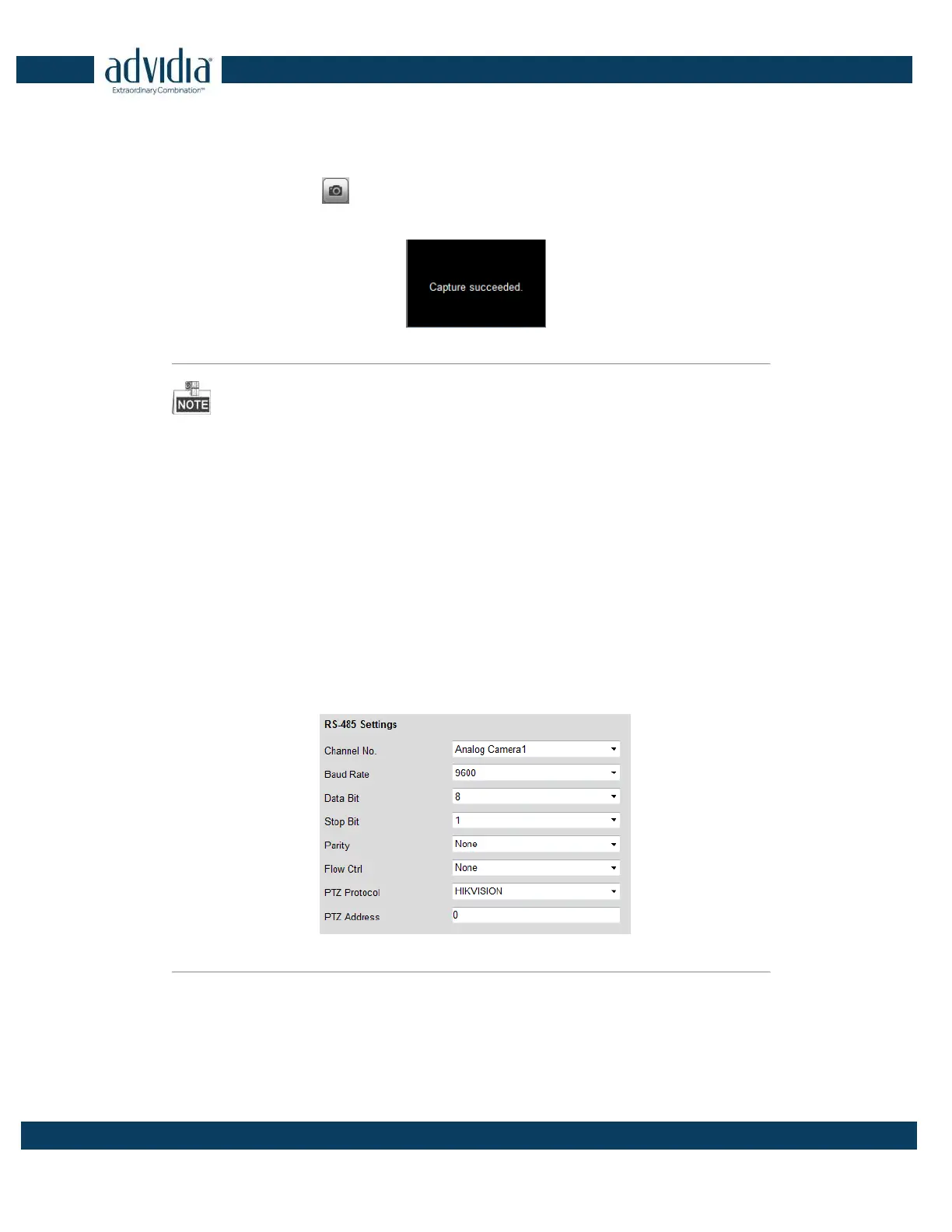 2. The baud rate, PTZ control and address configured in the RS-485 Settings interface (Remote Configuration >