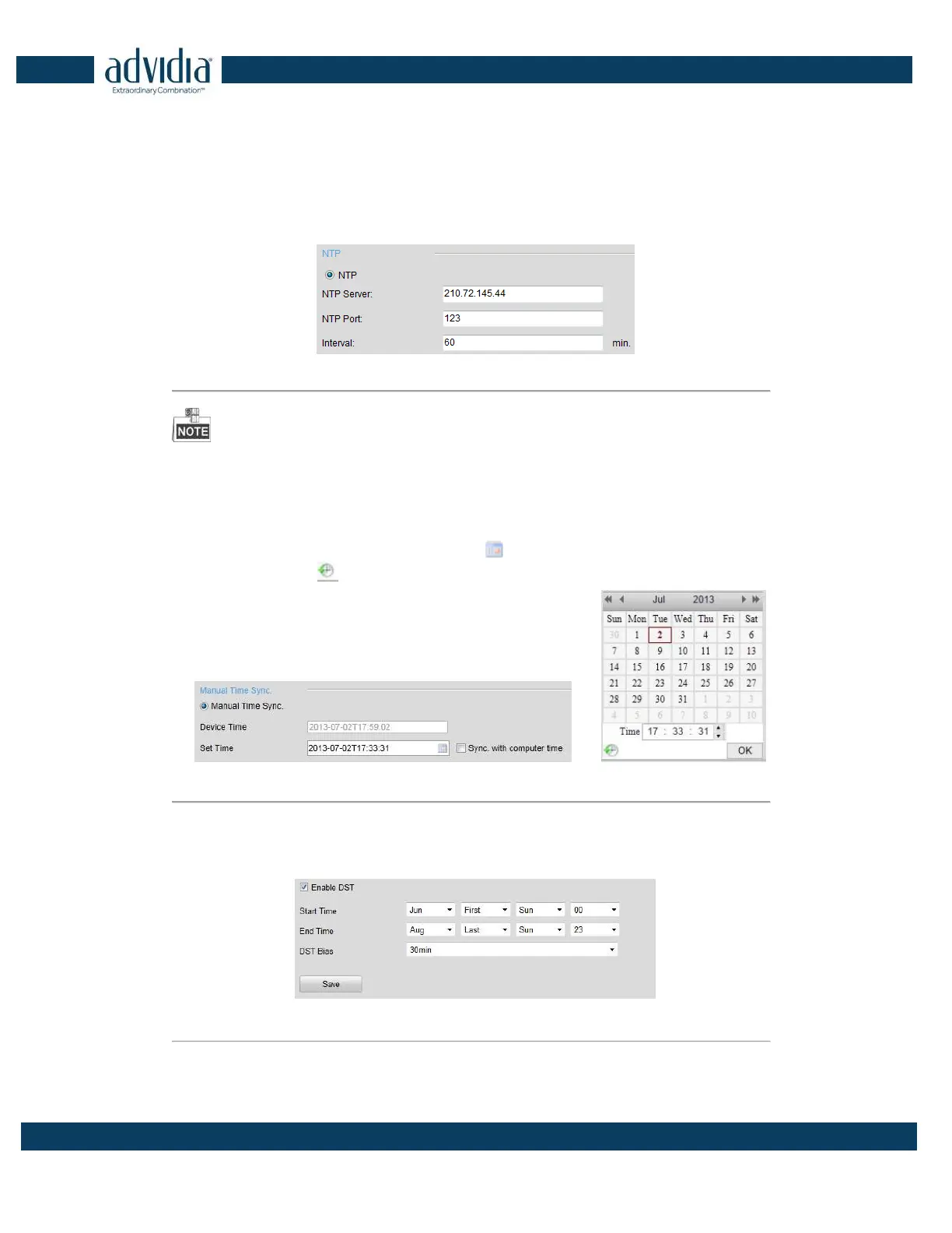 Enable the Manual Time Sync function and then click the icon to set the system time from the pop-up