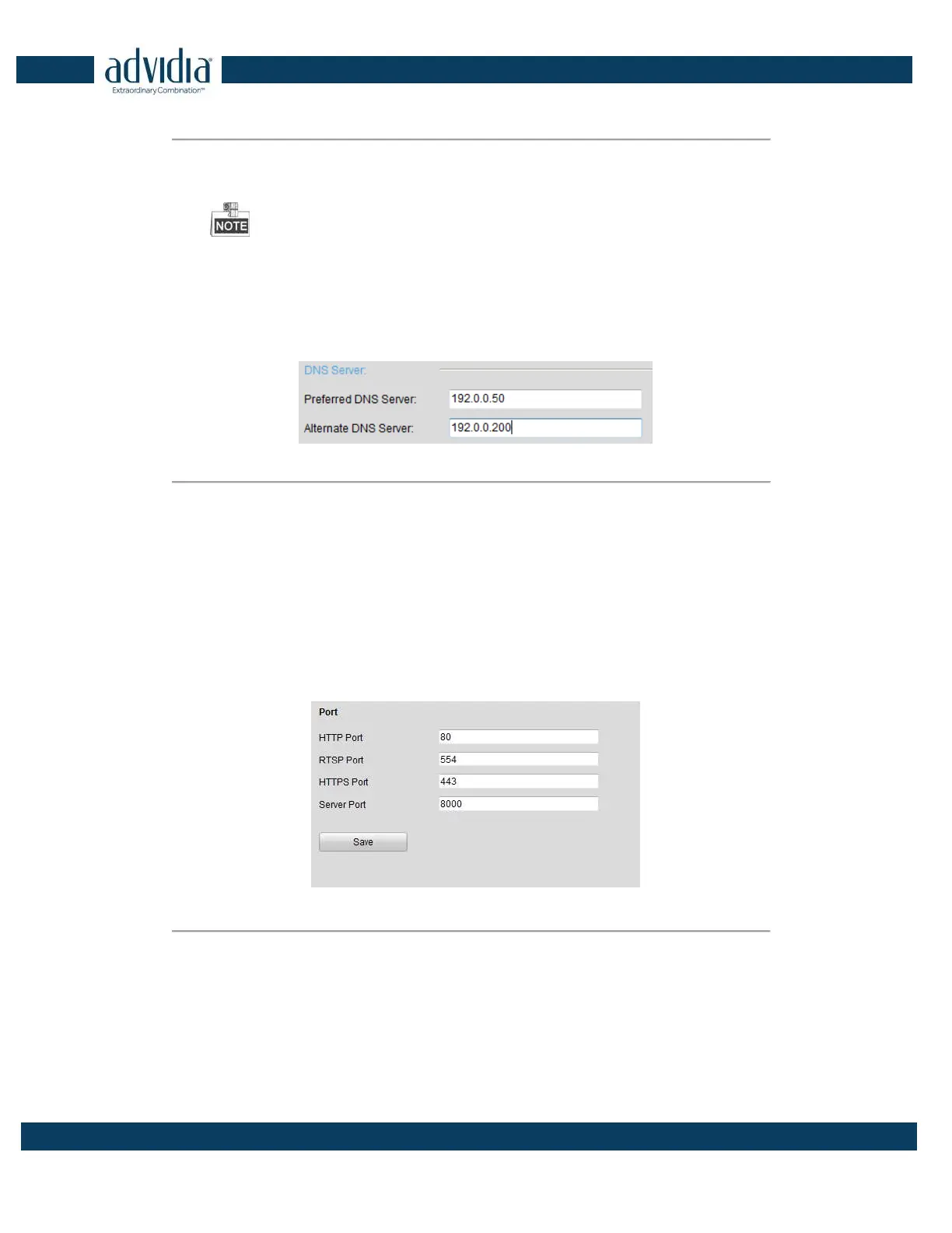 You can set the port No. of the encoder, e.g., HTTP port, RTSP port and HTTPS port.
