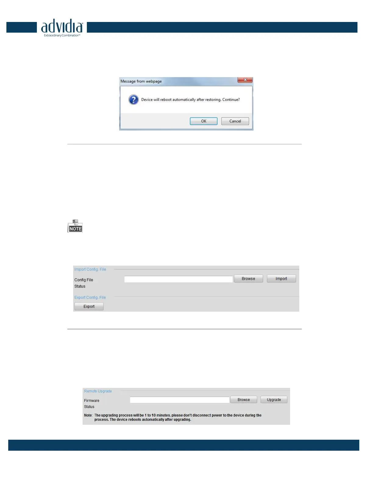 After having finished the import of configuration files, the device will reboot automatically.