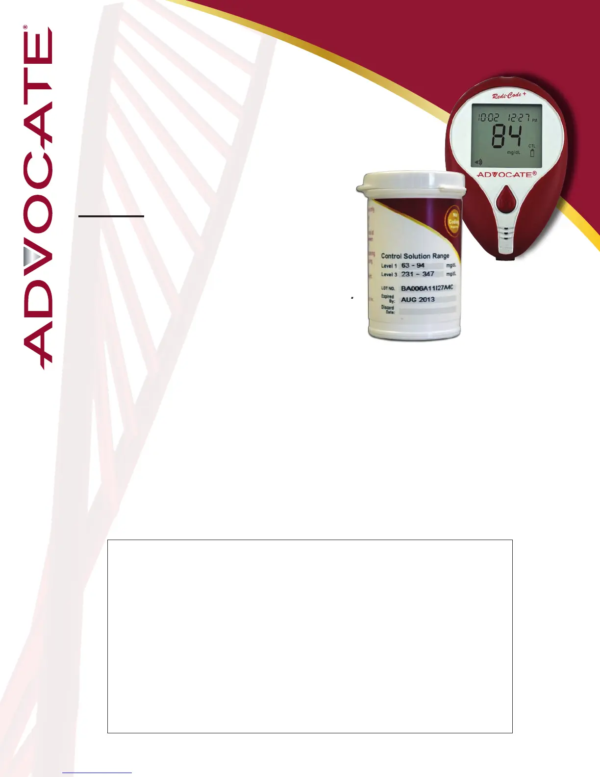 • The control solution range printed on the test strip vial is for Advocate