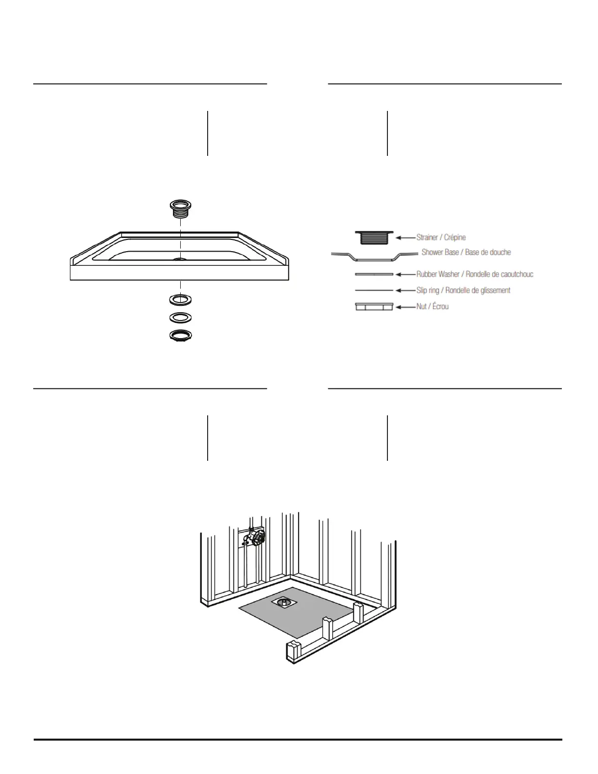 Instale el desagüe en la base de la ducha.Installez le drain dans la base de la