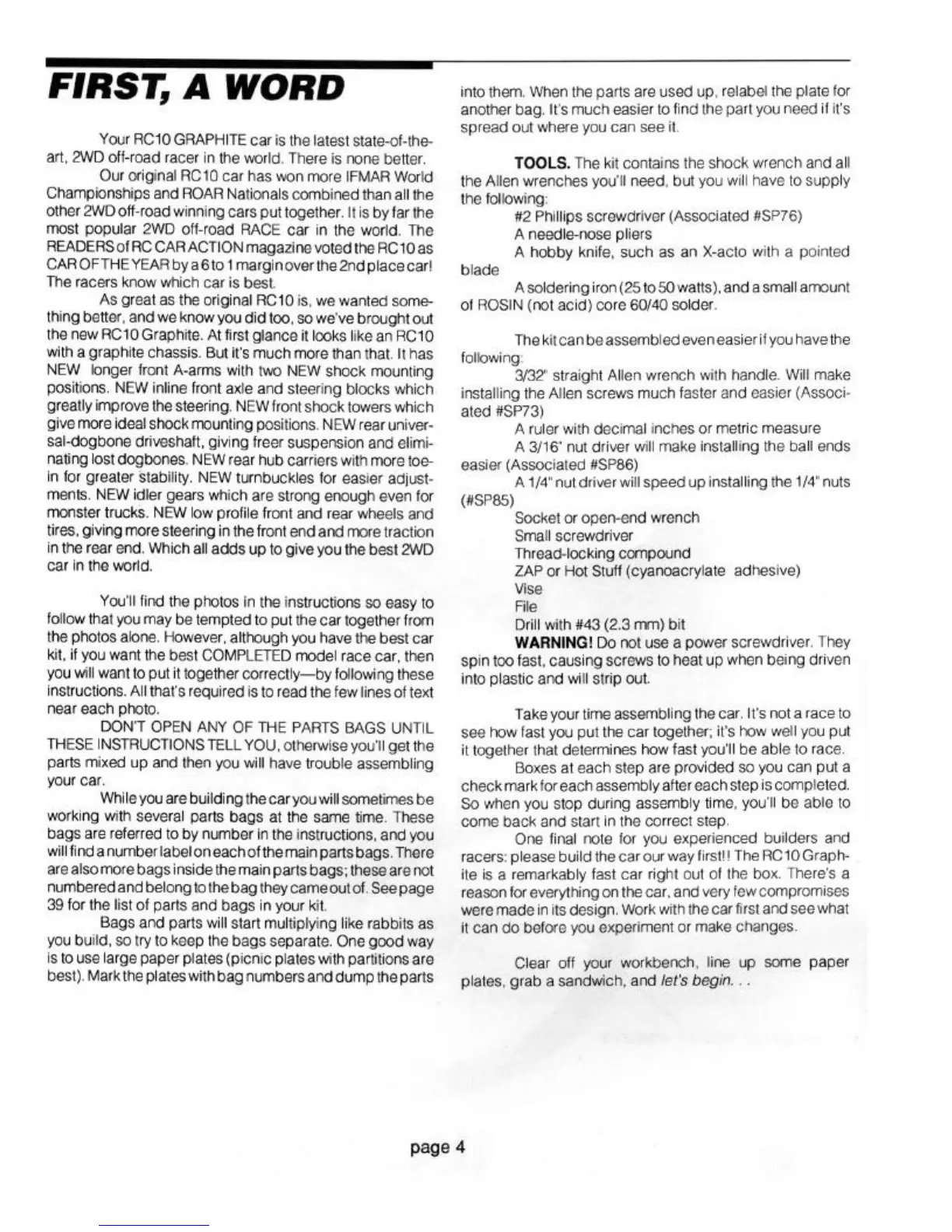 AE RC10 GRAPHITE - FIRST, A WORD; TOOLS