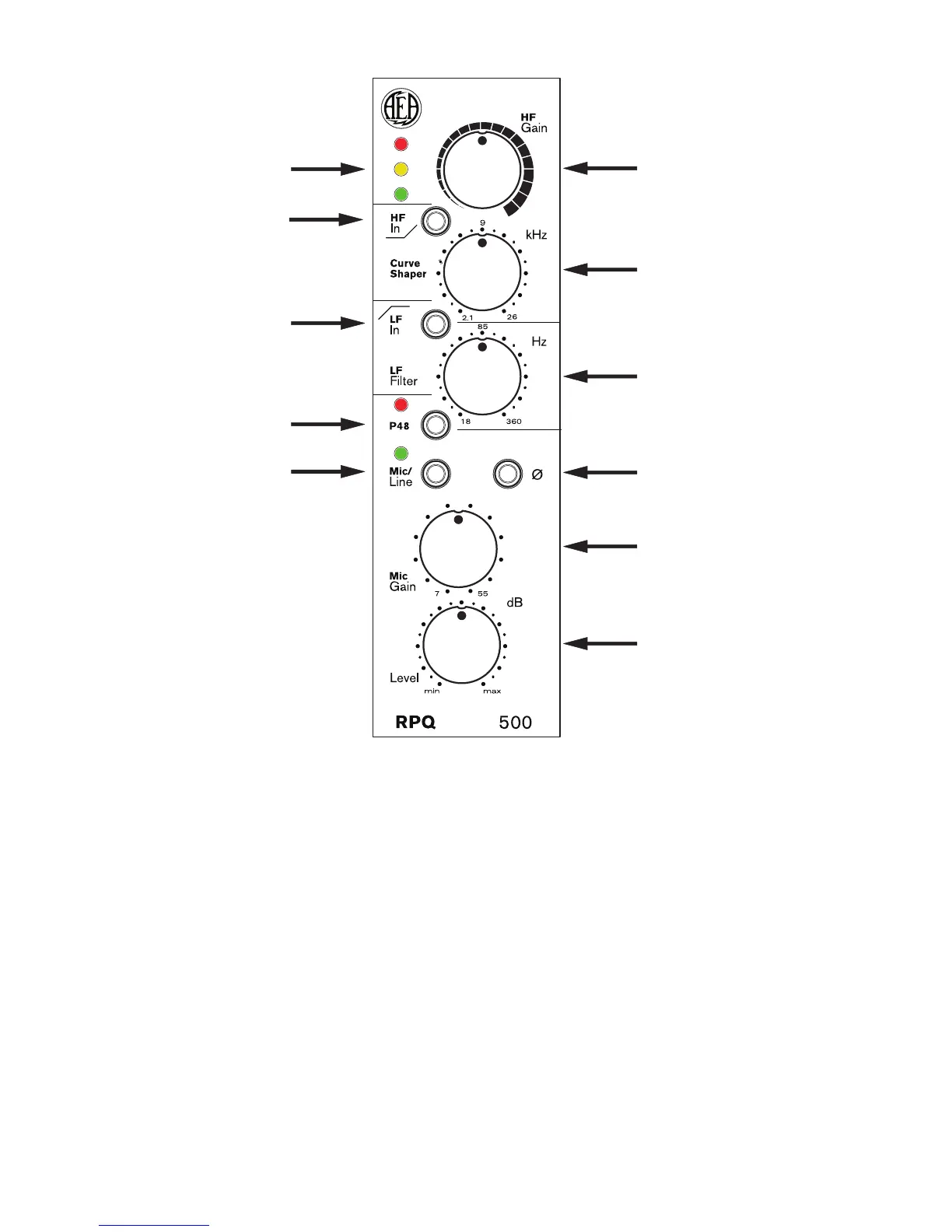 Figure 1: AEA RPQ500 Front Panel Diagram