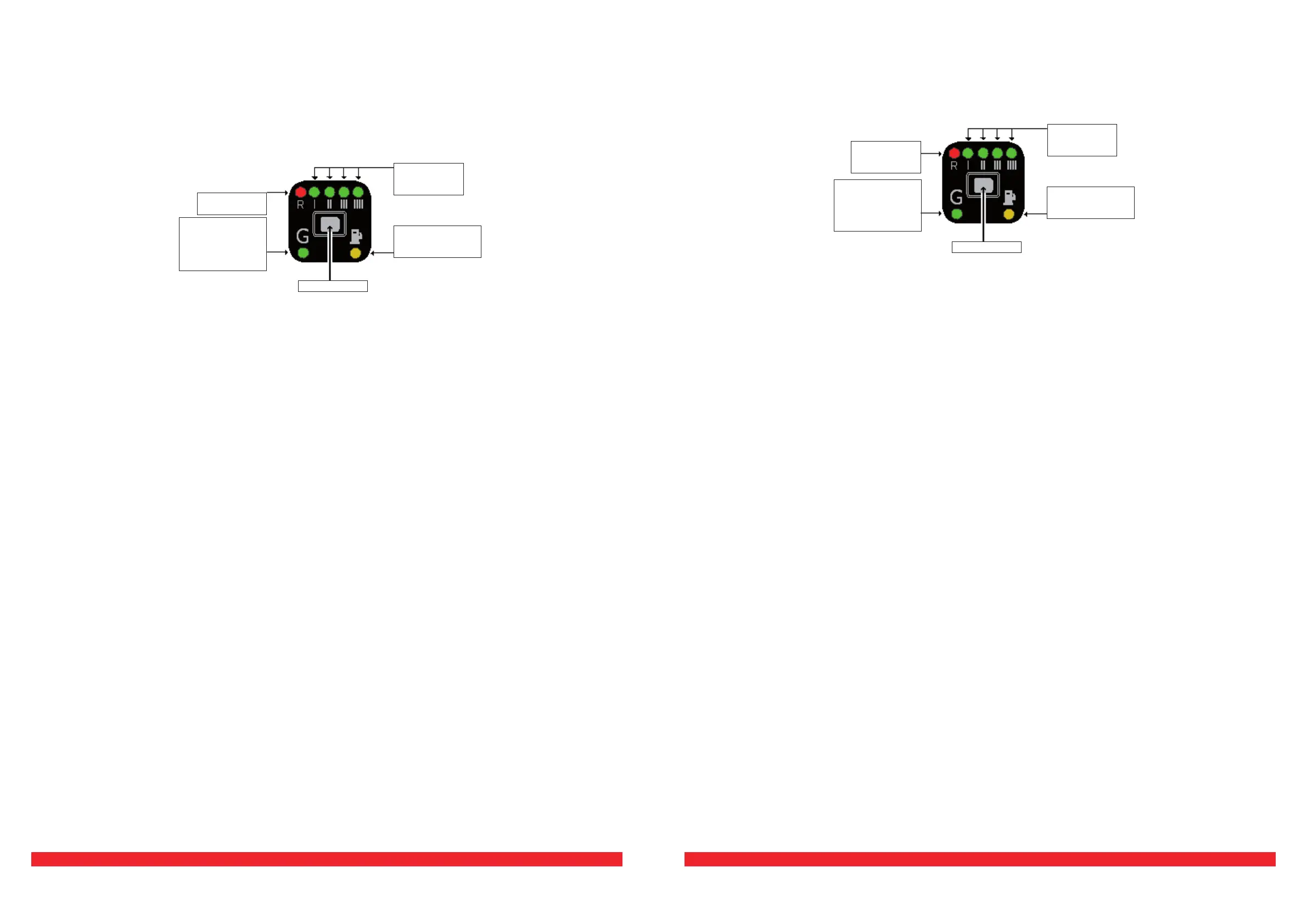 Fuel level indicator; reserve RED LED, while the 4 GREEN LEDS indicate the fuel level (1/4, 2/4,