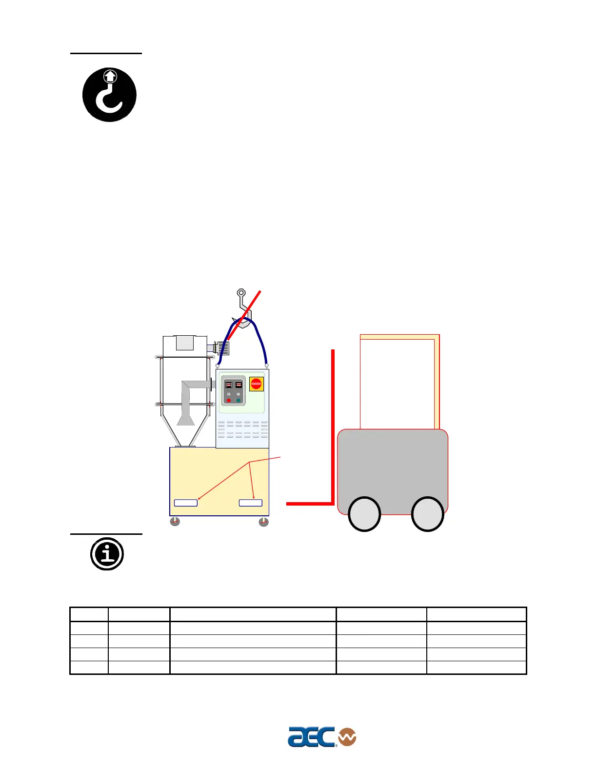 Do not use a hoist to move or rig your ACM Dryer when it is