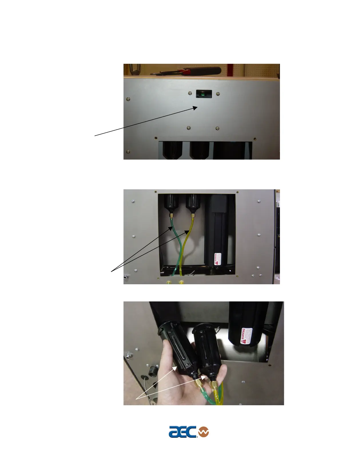 3. Locate the 2 compressed air hoses and filter bowls