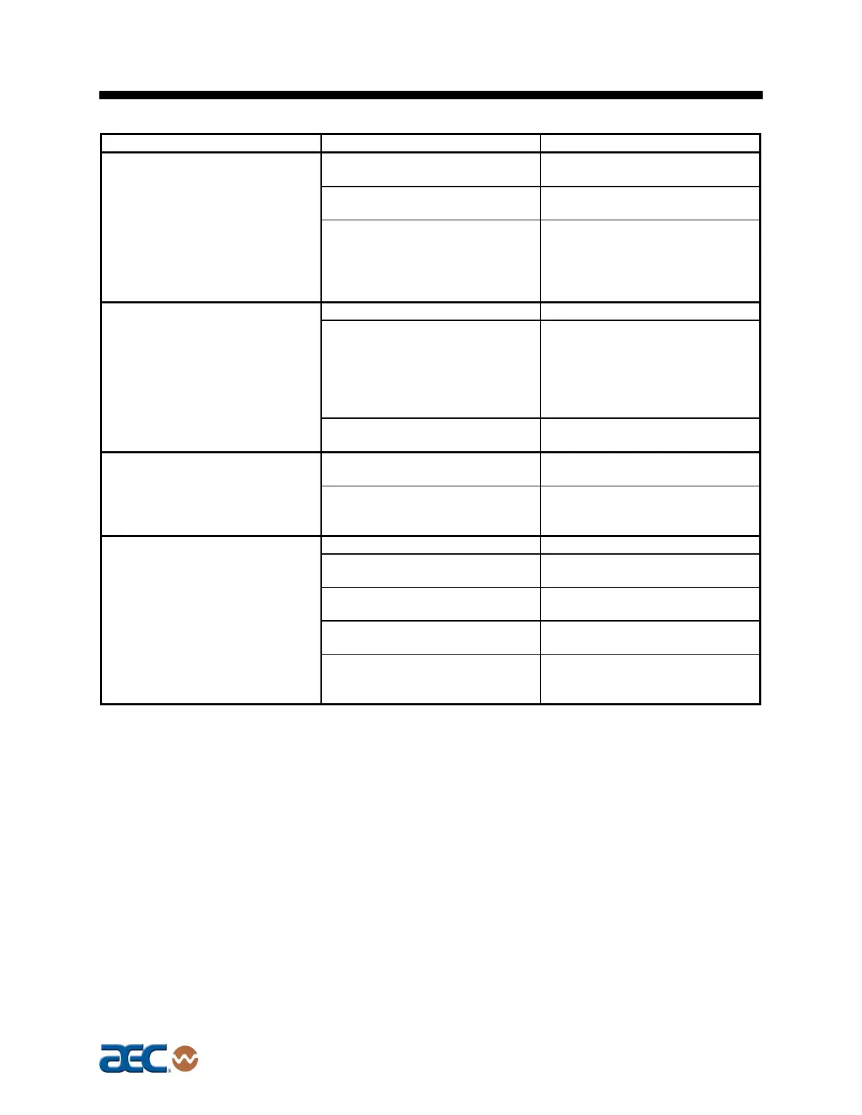 Problem Possible cause Corrective action