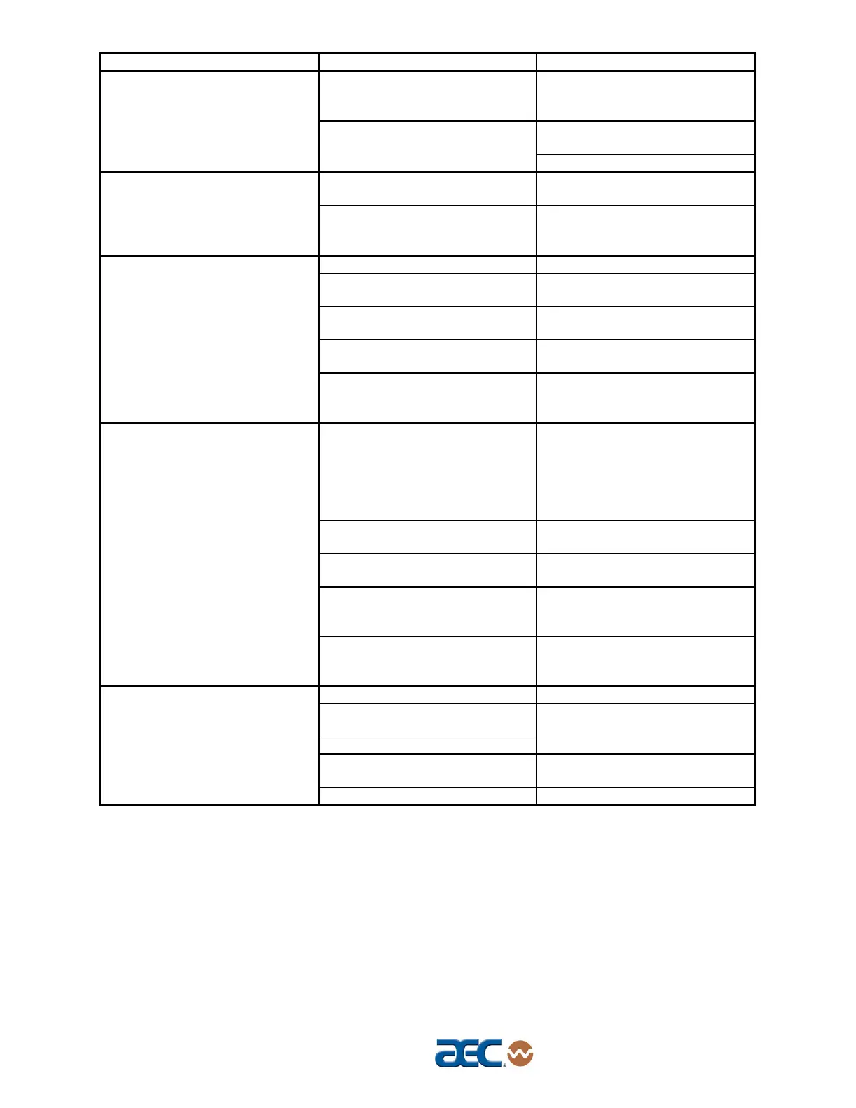 Problem Possible cause Corrective action