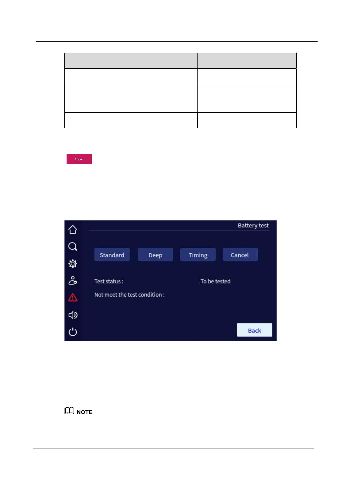 Battery test includes standard test and depth test and the battery test also can be canceled.