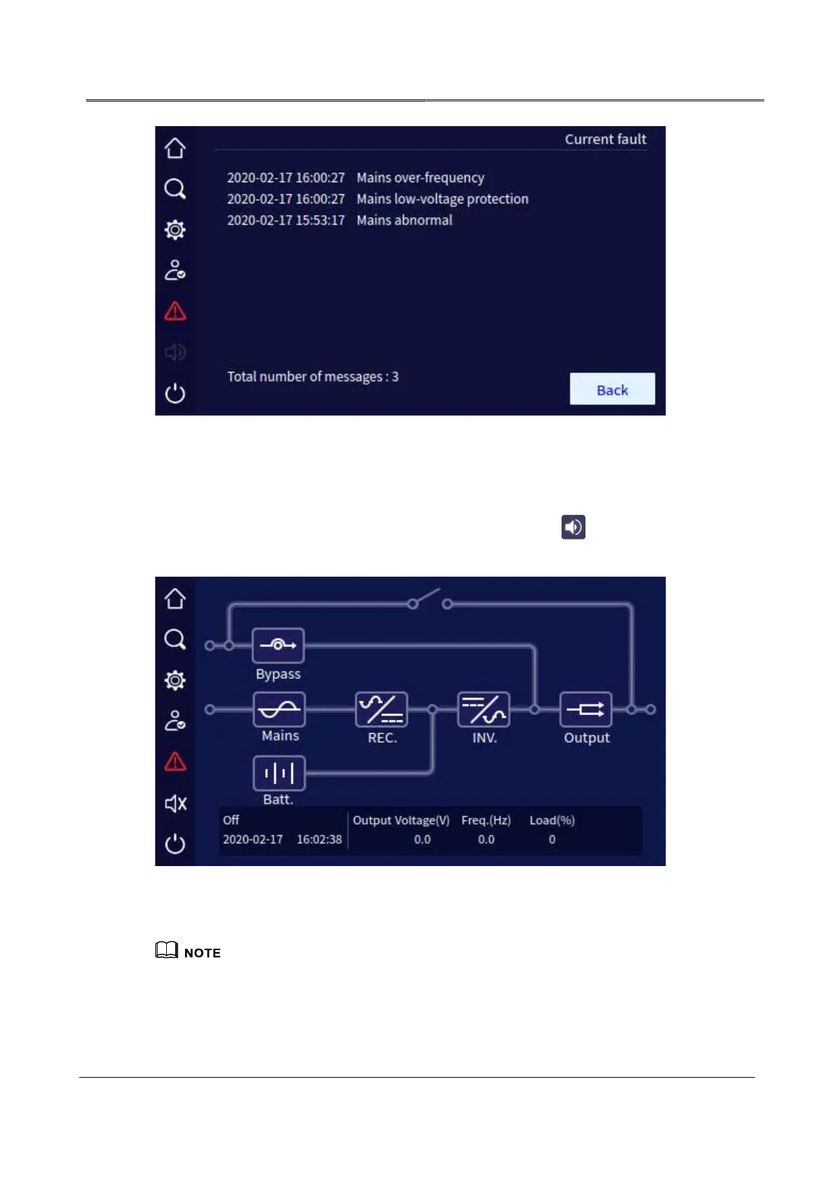 When the UPS fault, the buzzer icon will light on. Click the " " icon, the buzzer can be