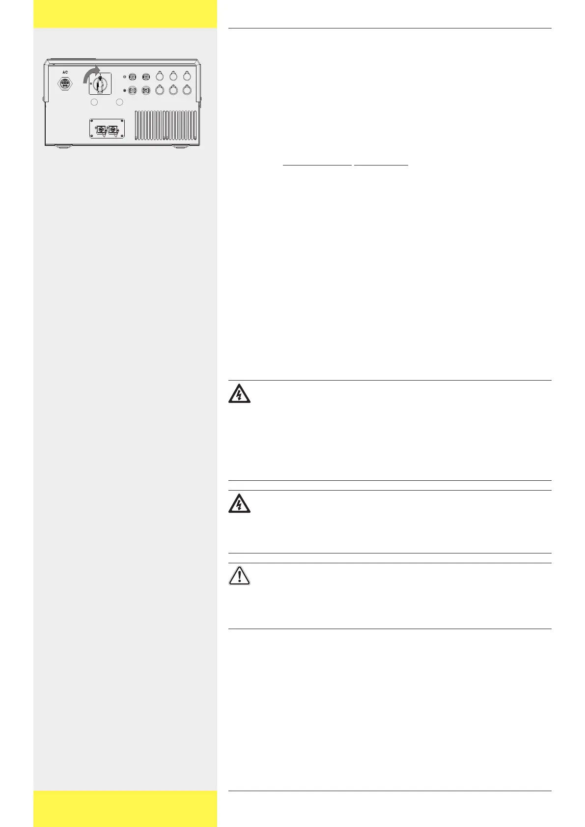 X Beim Arbeiten an der Photovoltaikanlage den Wechselrichter von der AC-