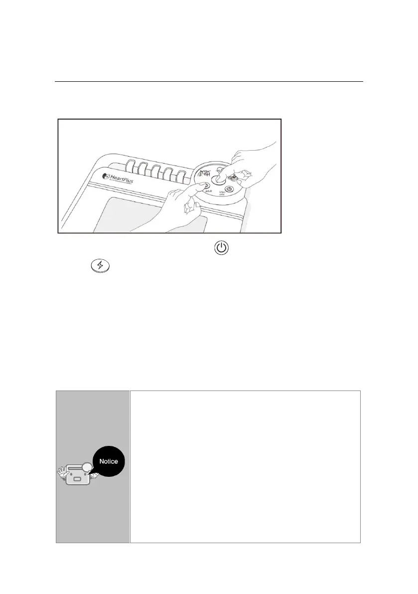 2. Push both Adult power button ( ) and the defibrillation shock