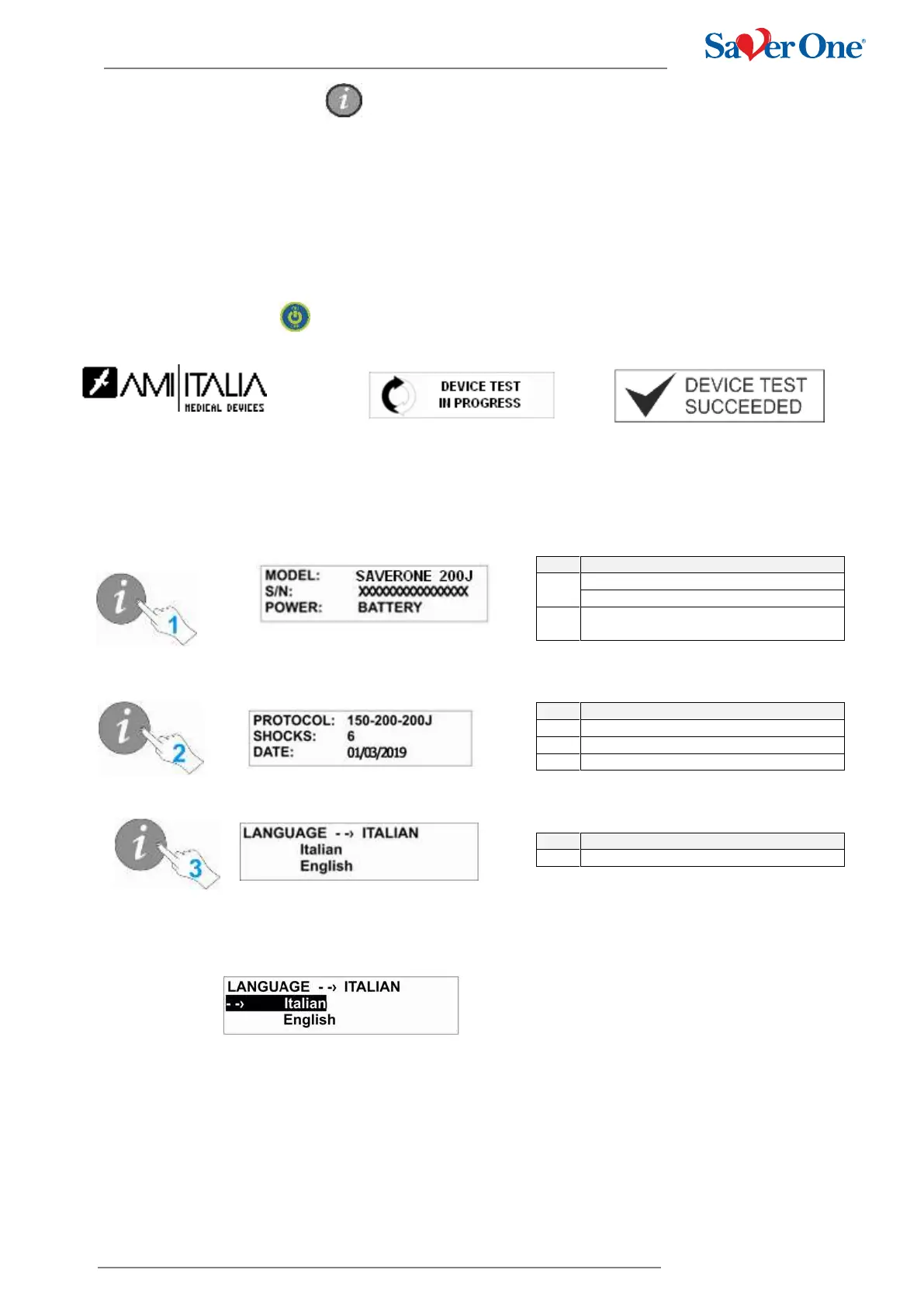 The Saver One is equipped with an “i” button, through which the operator can view various useful information about