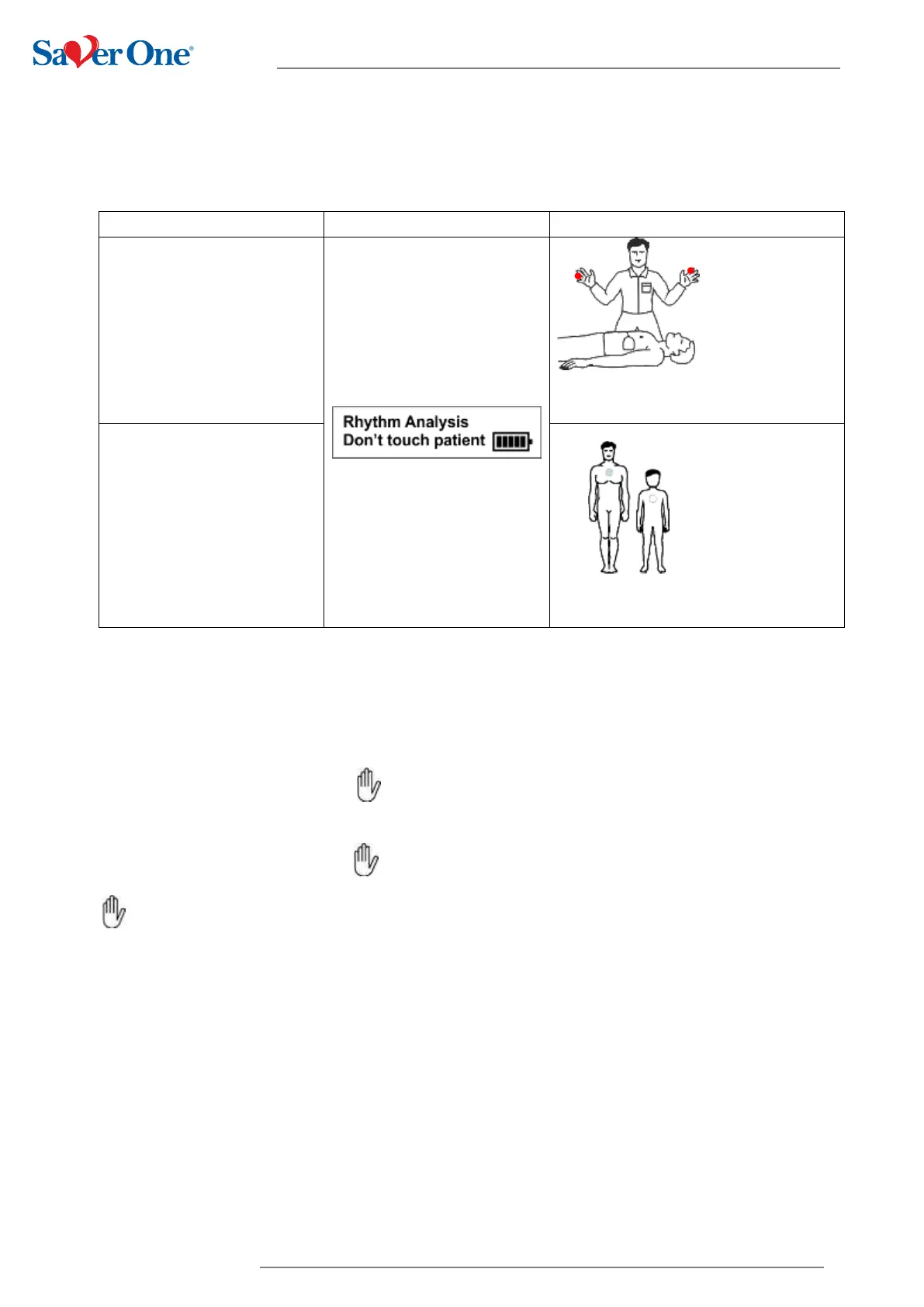 The Saver One automatically analyses the patient's heart rhythm. This phase is highlighted by the following