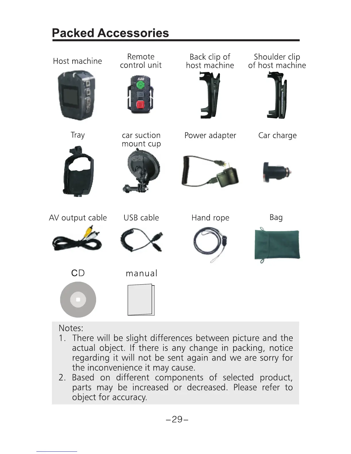 AEE HD77 - Packed Accessories
