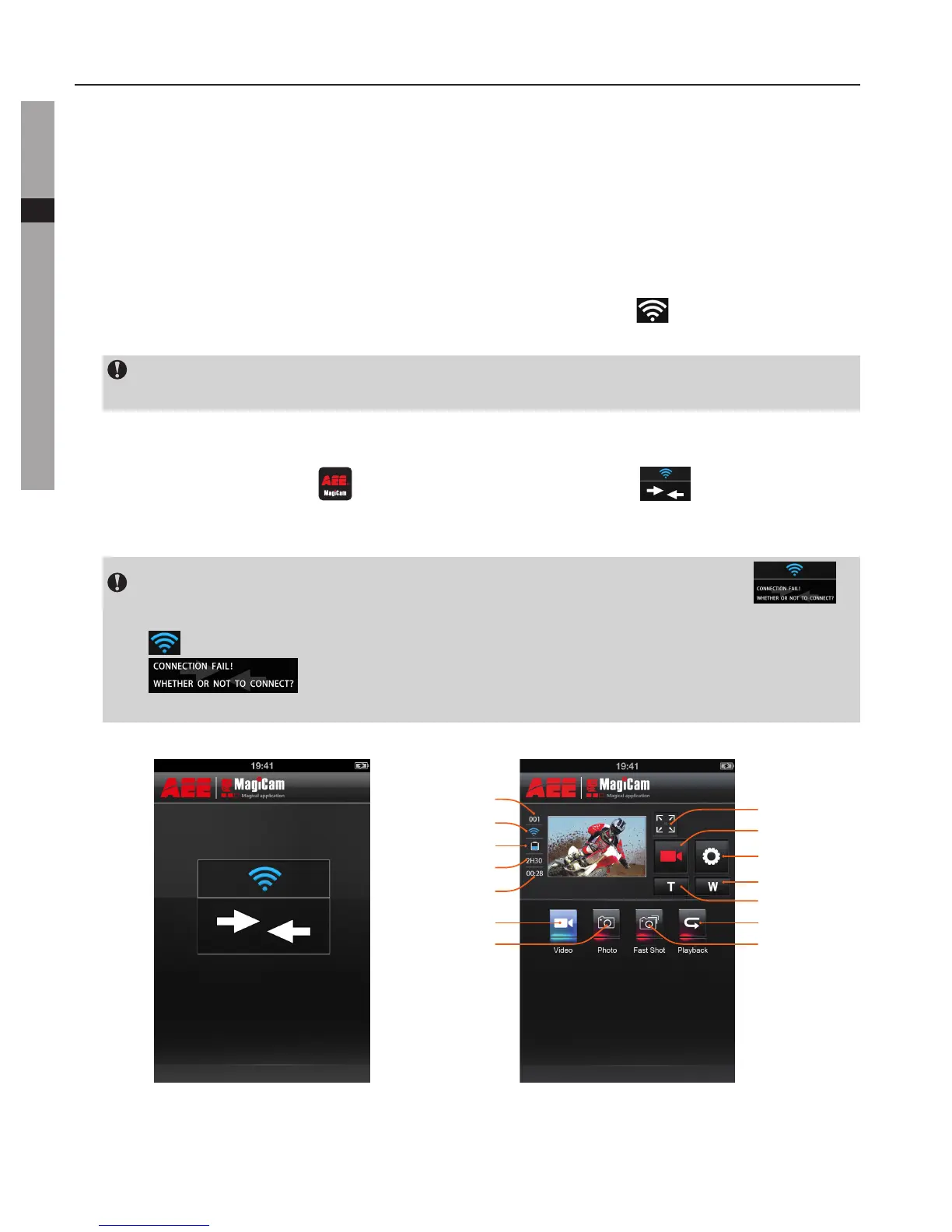 b.Cercatel'hotspotWi-Fisuundispositivomobile,selezionatelarete"AEEMagicam"e